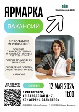 НПАО «Светогорский ЦБК» приглашает всех желающих на ярмарку вакансий НПАО «Светогорский ЦБК» приглашает всех желающих на ярмарку вакансий, которая пройдет в воскресенье 12 мая в 11:00 в конференц-зале «Депо» (Светогорск,