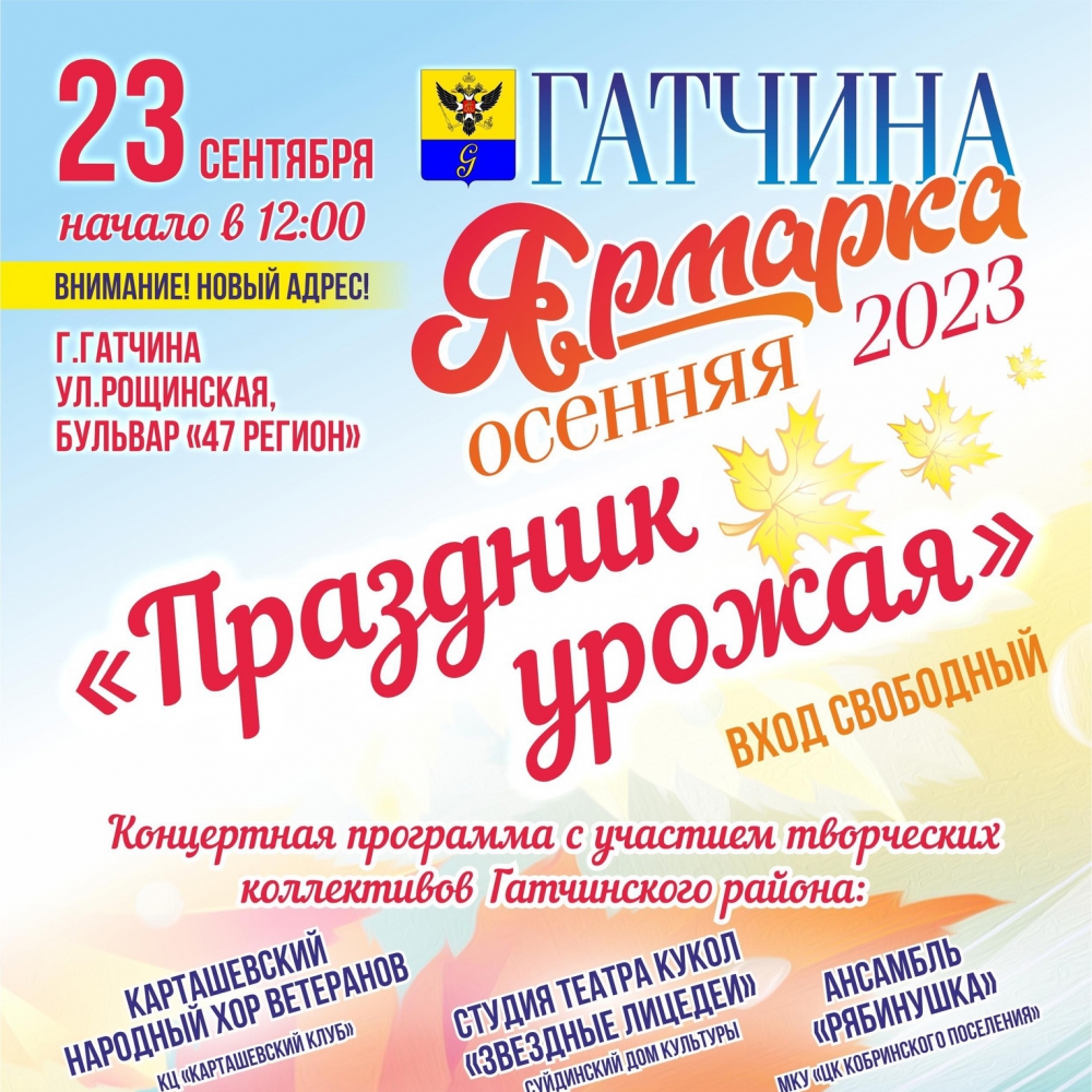 С 21 по 24 сентября в Гатчине на ул. Рощинская Бульвар "47 Регион" состоится Осенняя ярмарка!