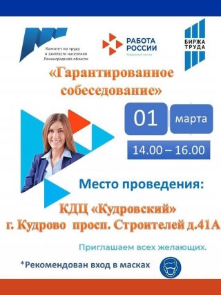 1 марта в кудровском КСДЦ (пр. Строителей д. 41а) специалисты будут ждать соискателей.