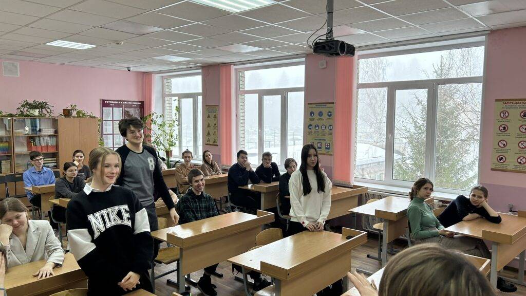 Встречу учеников 10-11 классов с парламентарием организовала Тамара Мирошниченко, руководитель школьного музея. Тамара Ивановна пояснила, что Александр был её учеником в университете, поэтому он с радостью согласился приехать и рассказать школьникам об устройстве власти.