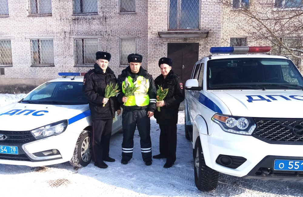 В канун праздника 8 марта на дороги Сланцевского района вышли «цветочные патрули».