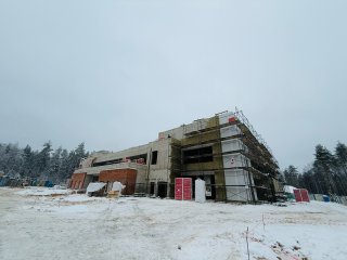 Готовность городского бассейна составляет - 23%. В настоящее время рабочие утепляют фасад.