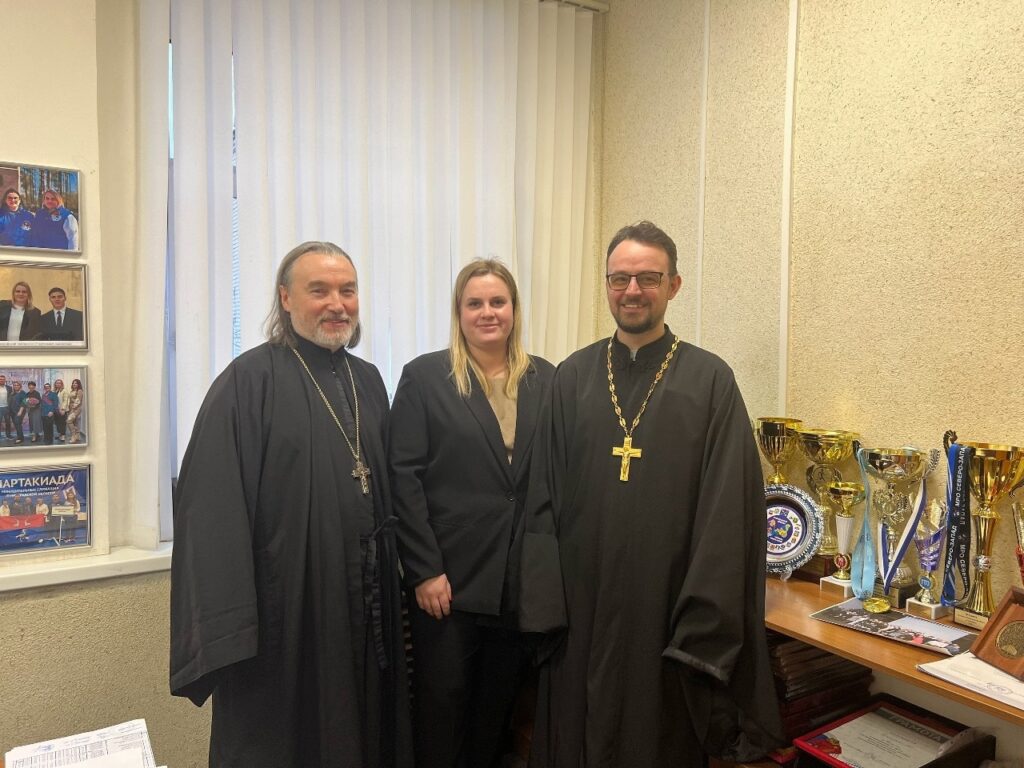 На этой неделе состоялась встреча Олега Патрикеева – иерея, руководителя молодëжного отдела, заместителя председателя миссионерского отдела Выборгской епархии и священника Артемия Русакова — помощника благочинного Приозерского округа по молодежи с Татьяной Роммель — начальником отдела по физической культуре, спорту и молодёжной политике администрации Приозерского района.