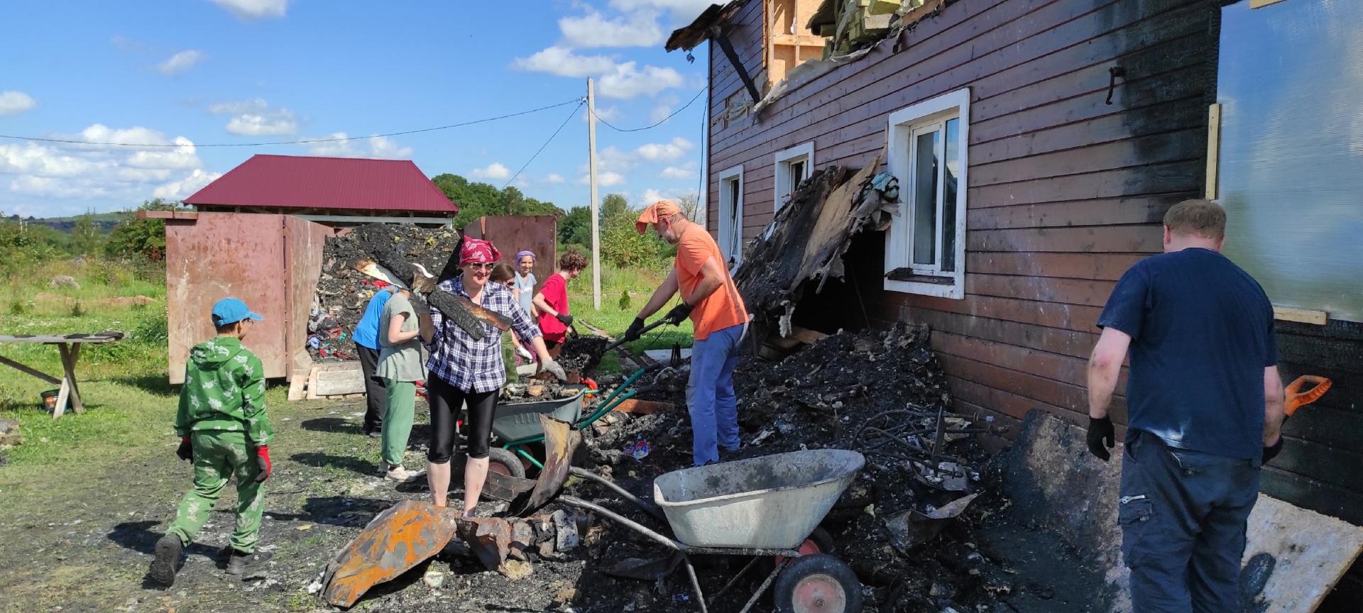 Силами волонтеров планируется провести уборку церкви св. блгв. Александра Невского, в которой в результате пожара выгорел второй этаж и притвор (первый этаж, где храм, не сгорел) и прилегающей территории.