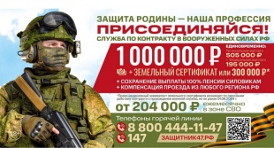 Напомним, в Выборгском районе пункт отбора на контрактную службу в Вооруженные Силы России находится по адресу: г. Выборг, Ленинградское шоссе, д. 28а, телефон 8 (81378) 2-53-00.