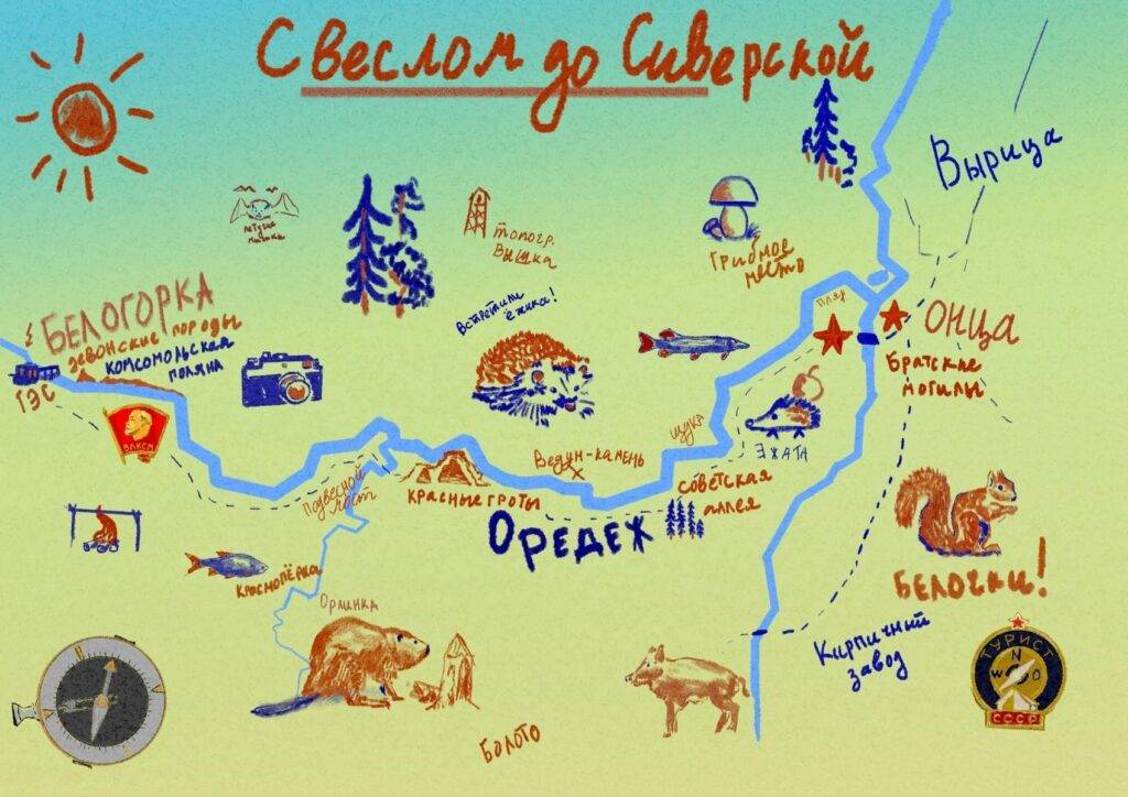 — Для большей презентабельности и гармоничности внешнего вида киоска проката плавсредств, предлагаем обклеить его фото-фасадами, на которых изображены скульптуры физкультурники времён СССР. Автор этих изображений художник Георгий Семёнов. Рядом с киоском нужно установить информационный щит с нашей картой «С веслом до Сиверской».