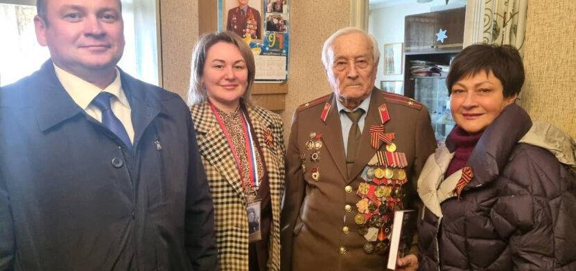 Фотография 2024 года: Василия Ивановича поздравляют с Днём Победы руководители области, района и Сиверского поселения.