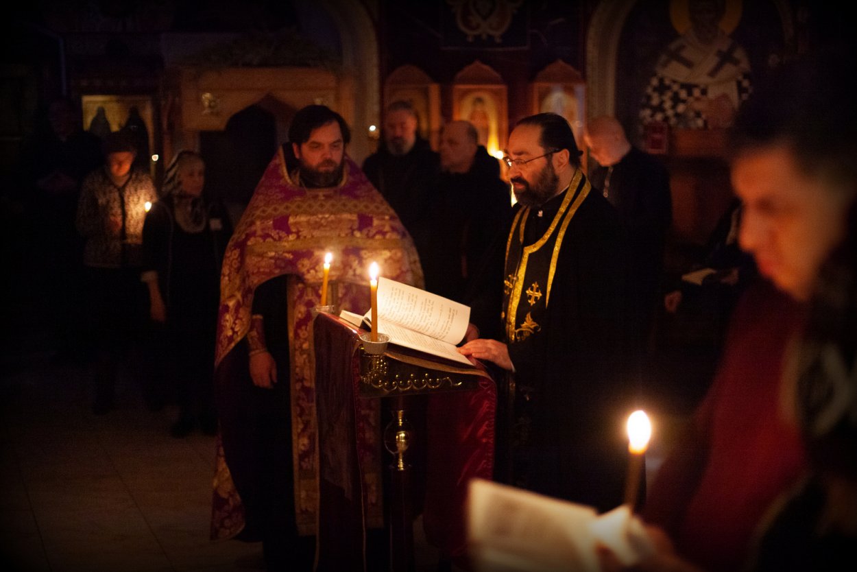 Богослужения Великого повечерия и чтение Великого канона возглавляет настоятель подворья, иеромонах Давид (Алексеев) , в сослужении иерея Георгия Прокофьева .
