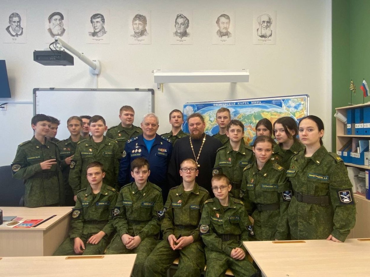 Клирик храма преподобного Сергия Радонежского провёл классный час на духовно-нравственные темы в авиационном кадетском классе МОБУ "Сертоловская СОШ № 3"