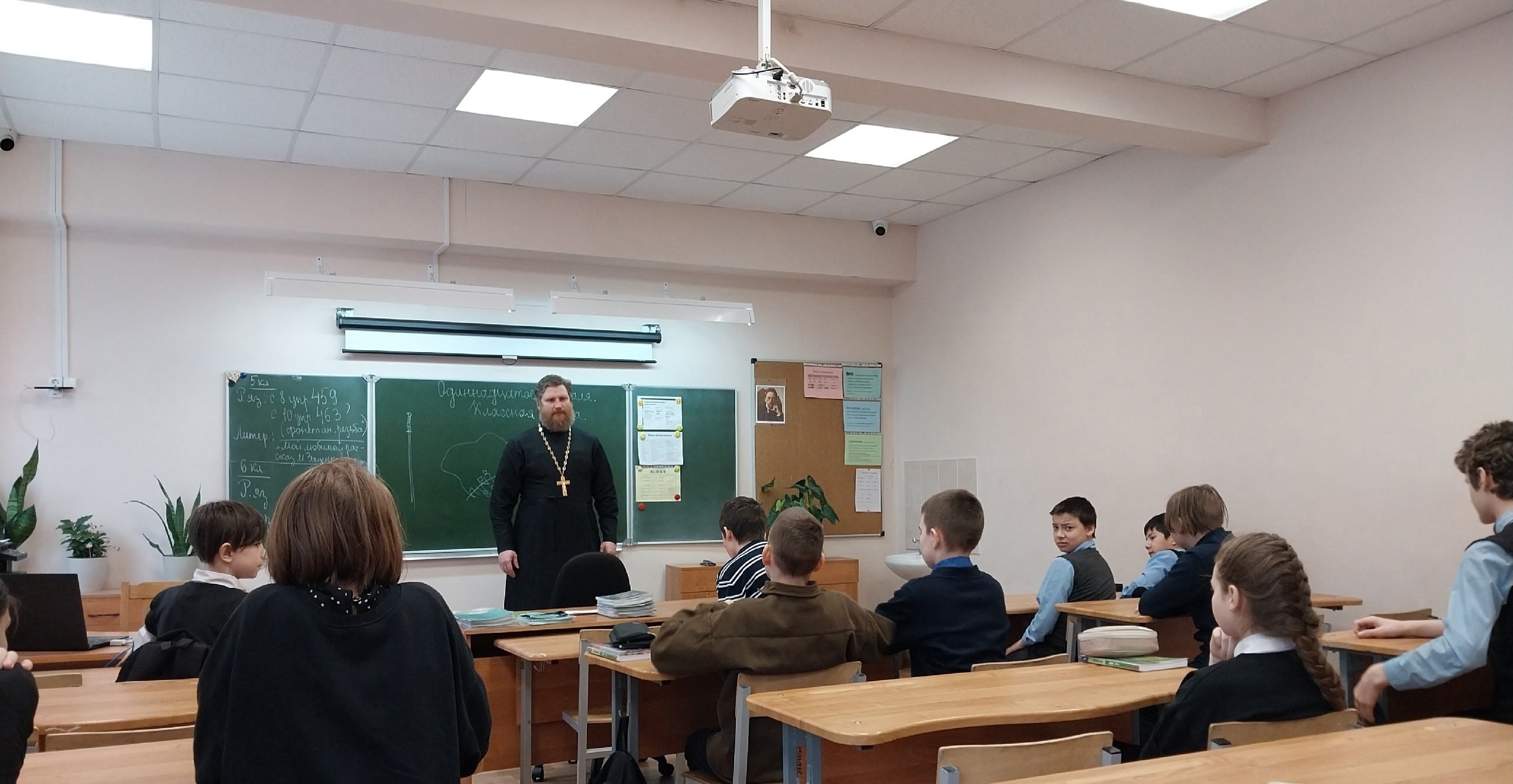 11 февраля помощник благочинного Приозерского округа по вопросам образования и катехизации, штатный священник собора Рождества Пресвятой Богородицы г. Приозерска, иерей Олег Каратаев посетил Приозерскую СОШ №4.