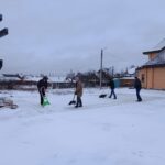 Накануне близ храма Апостола Андрея Первозванного (Красная Заря Кудровское благочиние) его прихожане помогли — сразу после Воскресной службы — расчистить от снега территорию.