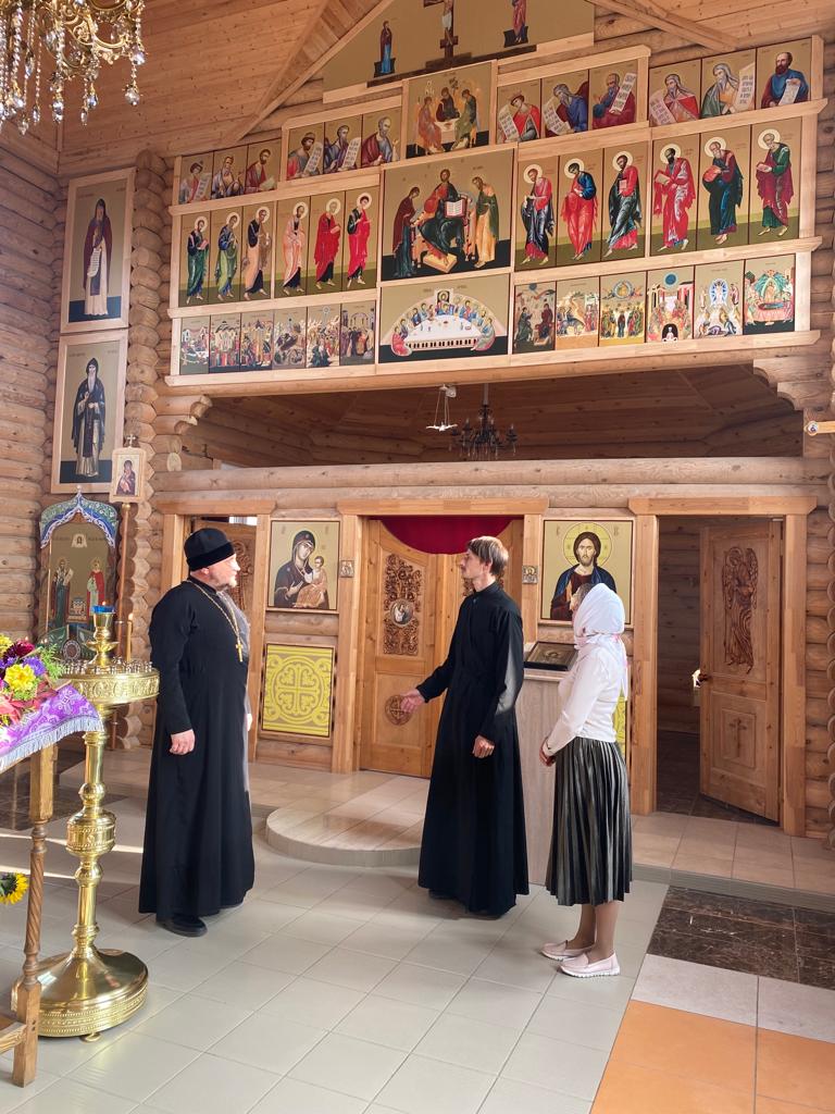 В проекте иконостаса и его сборке участвовали прихожане храма: Юлия Ярчак и Максим Саламатов . Пятиярусный иконостас выполнен в русском стиле в соответствии с интерьером деревянного храма.