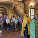В один из дней все участники лагеря совершили небольшое пешее паломничество в храм святых апостолов Петра и Павла в посёлке Красная Долина, где послужили молебен и узнали об истории храма.