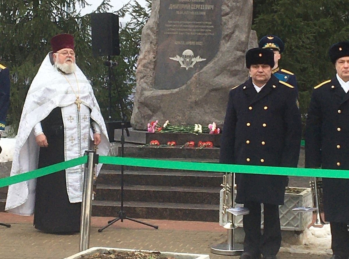 Настоятель храма Рождества Пресвятой Богородицы протоиерей Анатолий Щербатюк отслужил панихиду по погибшим героям. После богослужения священник вместе с личным составом воинской части возложил цветы к памятнику героя России Дмитрия Кожемякина и мемориалу воинов-десантников.