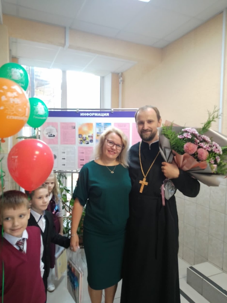 Школа встречала своих учеников в обновлённом виде. Сделан огромный ремонт фасада здания. С напутственным и поздравительным словом выступил настоятель храма преподобного Серафима Саровского иерей Александр Завацкий .