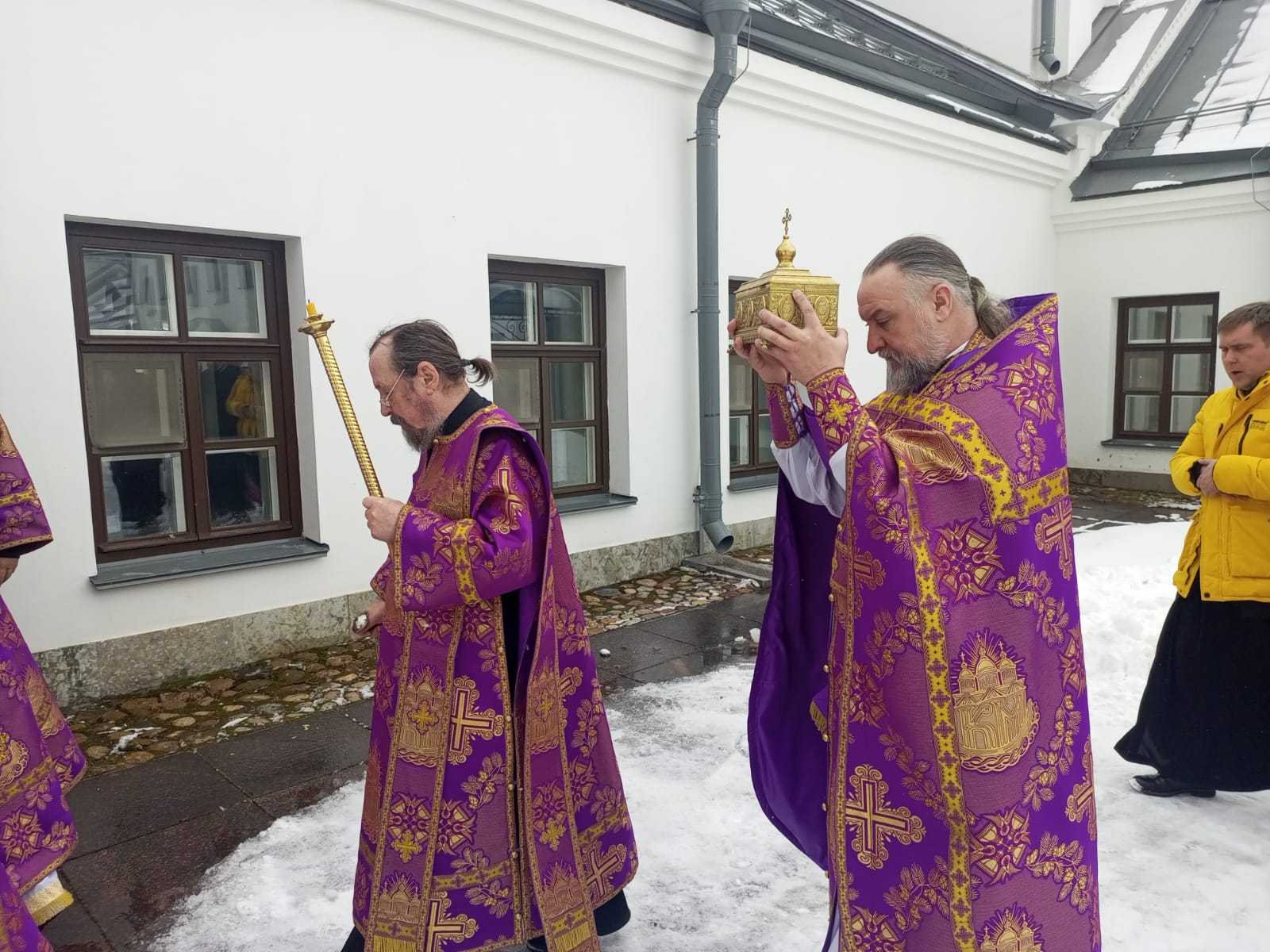 По завершении Литургии братия монастыря крестным ходом перенесла Святые Дары в Свято-Арсениевский храм, что в монастырском каре, для приобщения во время Литургии Преждеосвященных Даров.