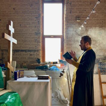 После состоялась уборка территории храма и памятного знака в честь Победы в Великой Отечественной войне.