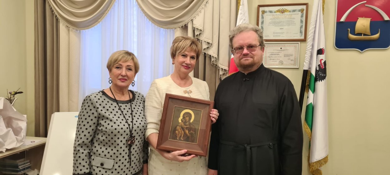 Владыка Игнатий поздравил с днем рождения главу администрации МО "Бугровское сельское поселение" Купина Ирину Вениаминовну