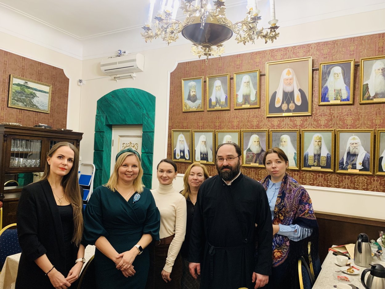 В ней приняли участие настоятель подворья иеромонах Давид (Алексеев), руководитель центра, пресс-секретарь Выборгской епархии Яна Сенькина, завуч Православной гимназии "Логос" Надежда Чуева, староста Свято-Троицкого храма Хиттолово и руководитель волонтерского центра "Синергия" Юлия Легостина, пресс-секретарь Кудровского благочиния Ирина Сафронова, директор воскресной школы Александро-Невского храм п.Романовка Екатерина Леонтьева и помощник по документообороту в ряде приходских проектов Елена Карсакова.
