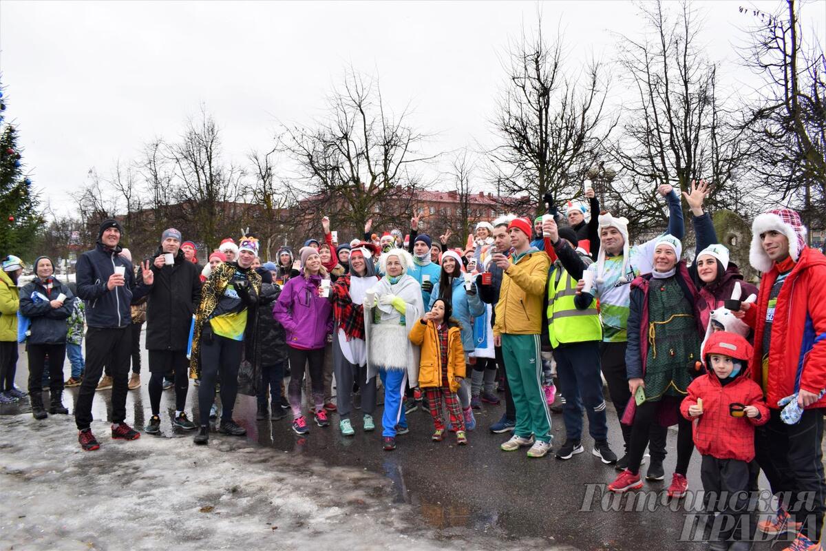 Взяли старт у елки на улице Рощинской и побежали до елки на улице Соборной, в новогодних костюмах, по тротуарам, не создавая помех пешеходам и автомобилям.