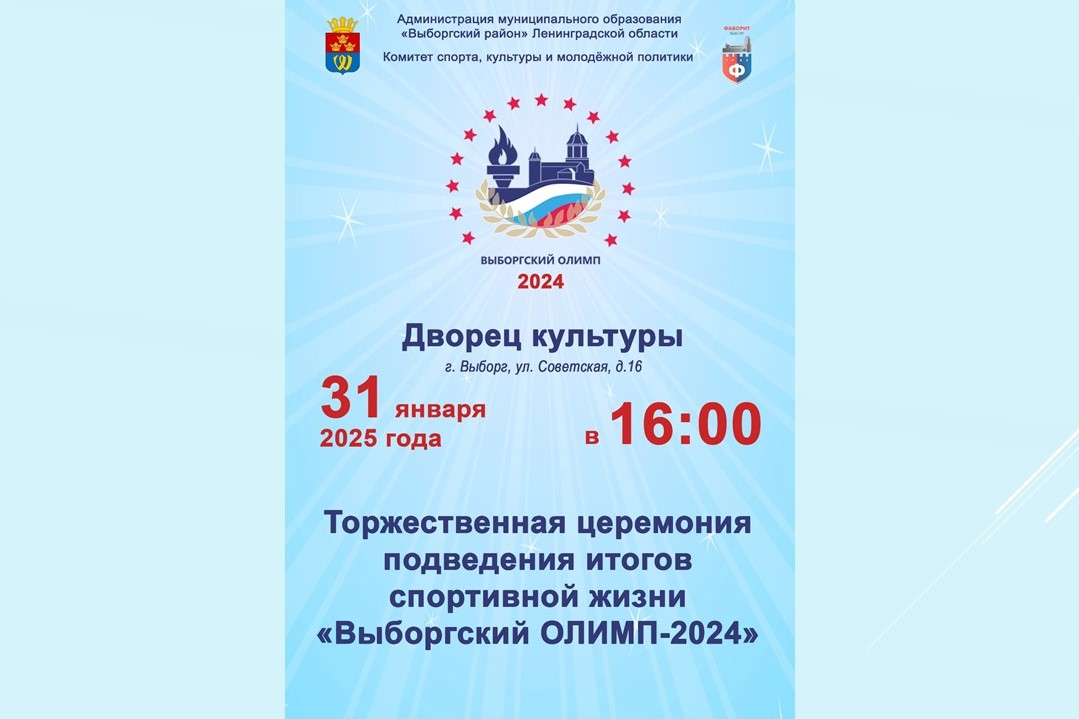 В пятницу, 31 января, во Дворце культуры пройдет традиционная церемония чествования лучших в сфере физической культуры и спорта в Выборгском районе по итогам прошлого года.