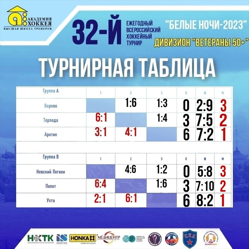 Завершился групповой этап дивизиона "Ветераны 50+" Всероссийского турнира "Белые Ночи-2023"