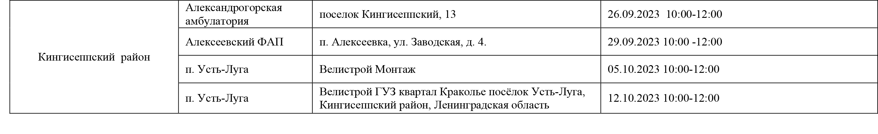 Стационарные прививочные пункты в Кингисеппском районе: