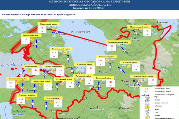 Как сообщило ГУ МЧС по Ленинградской области 31 марта, в понедельник, 1 апреля, погода будет облачная с прояснениями. Ночью местами пройдет небольшой дождь, в отдельных районах будет туман. Утром и днем в большинстве районов ожидаются кратковременные дожди, местами грозы и даже ливни.