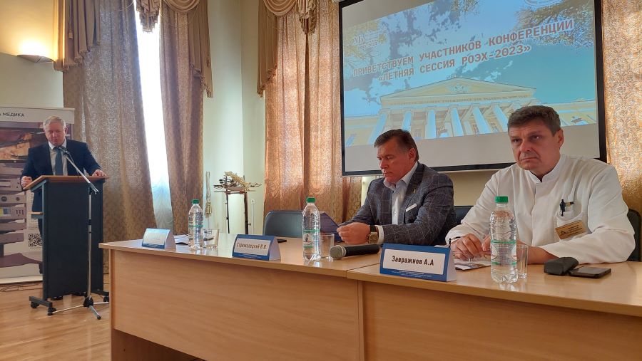Главный врач Анатолий Анатольевич Завражнов включен в состав президиума конференции. В приветственном слове к участникам мероприятия он напомнил присутствующим об истории одного из старейших стационаров Северной столицы, которому 7 июня исполнилось 220 лет, о том, что в его стенах работали известные российские хирурги, оказавшие влияние на развитие не только отечественной, но и мировой медицины.