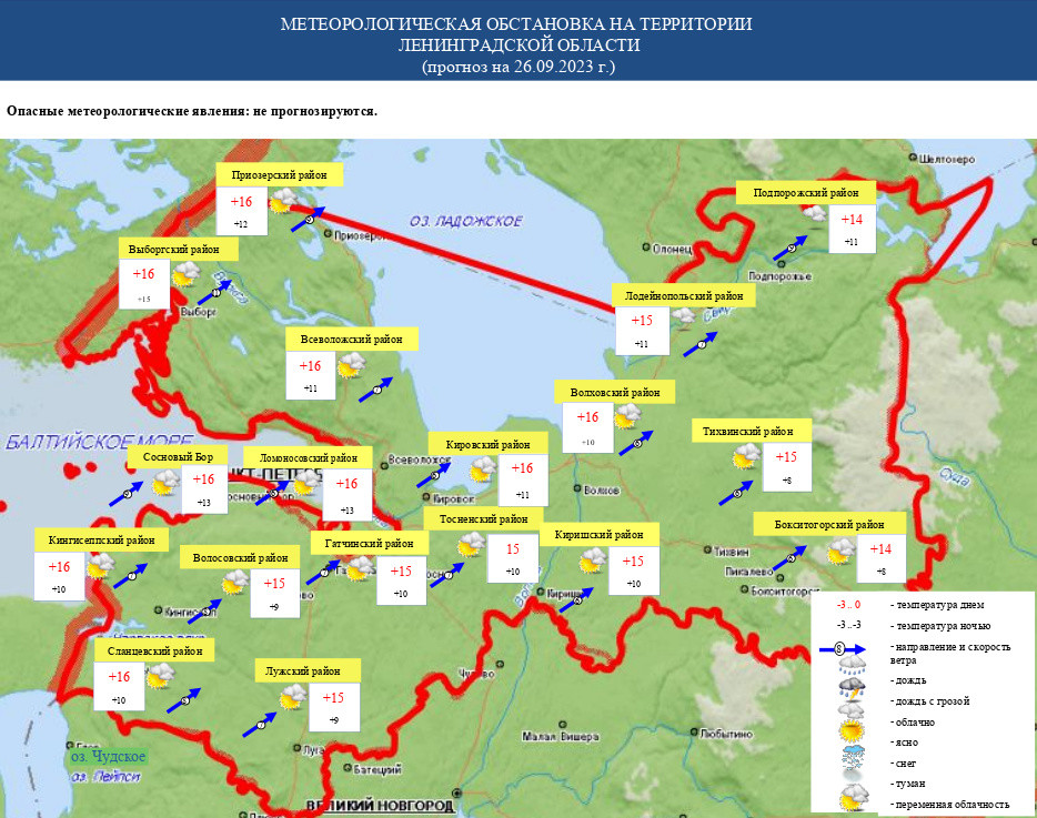 Днем в Ленобласти 26 сентября воздух прогреется до +15...+20 градусов.