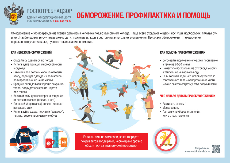 Роспотребнадзор напоминает об основных правилах профилактики обморожения при прогулках и работе на воздухе.
