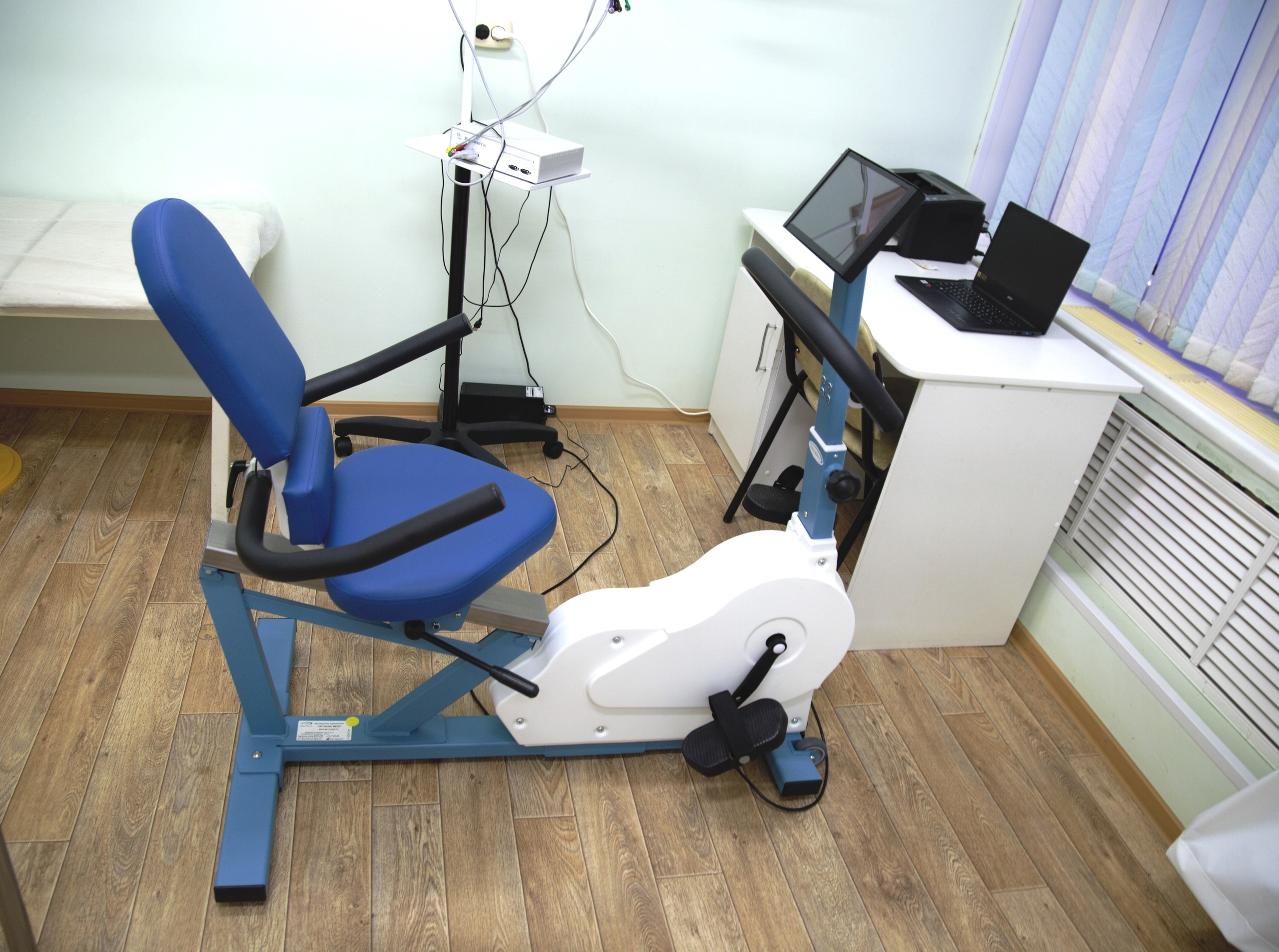Основа диагностической установки - велоэргометр. Аппарат предназначен для тестирования функционального состояния сердечно-сосудистой системы под нагрузкой. Нацелен на выявление нарушений сердечного ритма, проведение дифференциальной диагностики аритмий, оценку причин загрудинных болей, а также анализ патологических изменений артериального давления при физической нагрузке. Назначение на диагностику с применением нового комплекса любой житель Кингисеппа и Кингисеппского района может получить у специалиста-кардиолога.