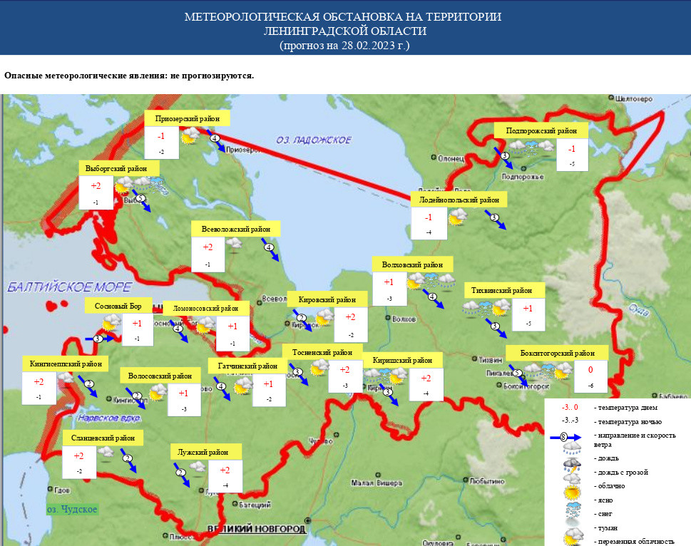Облачная с прояснениями погода, осадки и потепление ожидают жителей Ленинградской области во вторник, 28 февраля.
