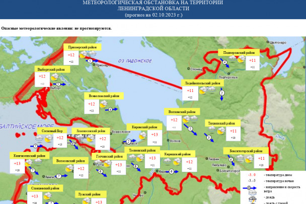Как сообщает пресс-служба ГУ МЧС по Ленинградской области, 2 октября ночью будет облачность с прояснениями, а днем ожидается переменная.
