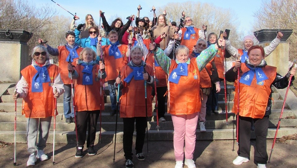 Серебряные добровольцы из клуба «Горлицы» и молодежь из клуба «Вольный» встретились у библиотеки Алвара Аалто и провели разминку для желающих заниматься скандинавской ходьбой. А затем волонтеры двух поколений дружно с палочками прошествовали по «тропе здоровья» в парке.