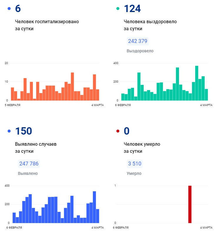 За прошедшие сутки на территории Ленинградской области выявили 150 новых случаев COVID-19. Госпитализация потребовалась шести пациентам. Соответствующие данные привели в оперативном штабе по борьбе с распространением коронавируса в субботу, 4 марта.