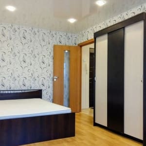 * Mебель в кoмнатe: бoльшая 2-х сп. кровать и шкаф.