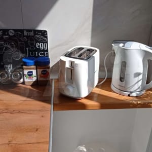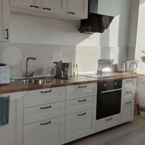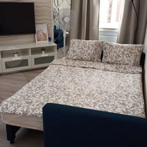 Отдельная спальня и большая гостиная с кухней, в которой есть все необходимое.