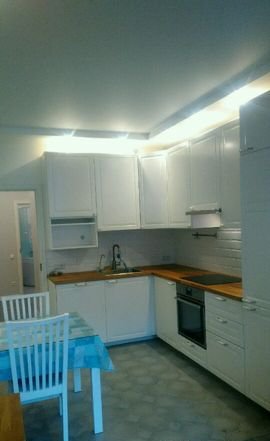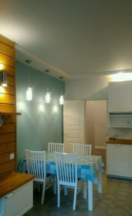 современным ремонтом,встроенной техникой и мебелью. Кухня-столовая 19м.,комнаты-16+23.,2 санузела и сауна. Сдаётся на длительный срок. 55 т.р.+счётчики и квартплата.
