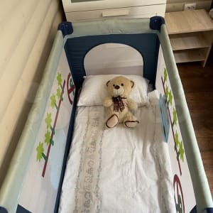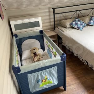 По требованию предоставляется манеж-кровать. Имеется стульчик для кормления. Книжки, игрушки.