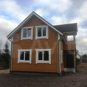 Отопление с электрическим котлом (электричество 3-фазное 15 кВт), установлена деревянная лестница на 2 этаж. Учаток разработан и отсыпан (на 75%).