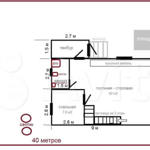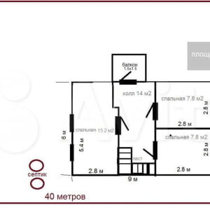 В доме 4 спальных комнаты 14/9/9/10 м2, ванная 6 м2, кухня-гостиная 32 м2.