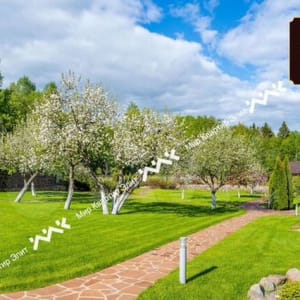 На участке растут яблони, груши, сливы, черешня, вишня, кусты селекционной малины, смородины, крыжовника, виноград. Выполнен дорогой ландшафтный дизайн.