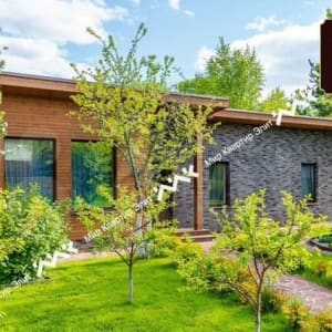 На территории участка так же расположены два гостевых дома, дом охраны, гараж, хозблок,баня с бассейном, летняя кухня с закрытой террасой. Все они вместе образуют единую архитектурную композицию.