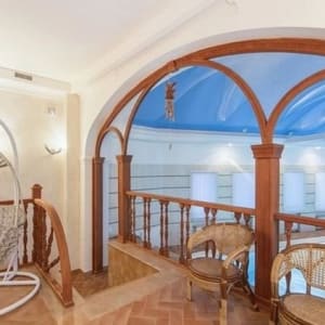 В цокольном этаже площадью 163 кв.м. находится СПА зона с бассейном и сауной, прачечная и несколько подсобных помещений.