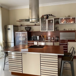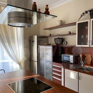 Просторная солнечная студия с круглым балконом в Финском доме-памятнике архитектуры. Вид на центральный парк Torkkelinpuisto, библиотеку Алваро Аалто и памятник Лосю Hirvipatsas.