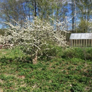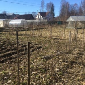 - участок разработан, огорожен забором, плодовые деревья, ягодные кусты